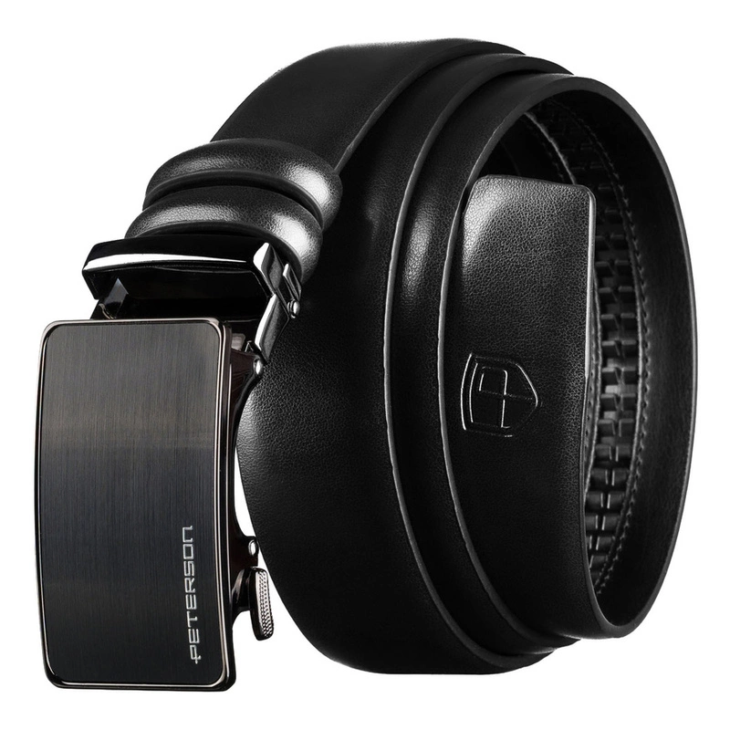 Pasek męski z automatyczną klamrą wykonany ze skóry naturalnej w czarnym kolorze - Peterson