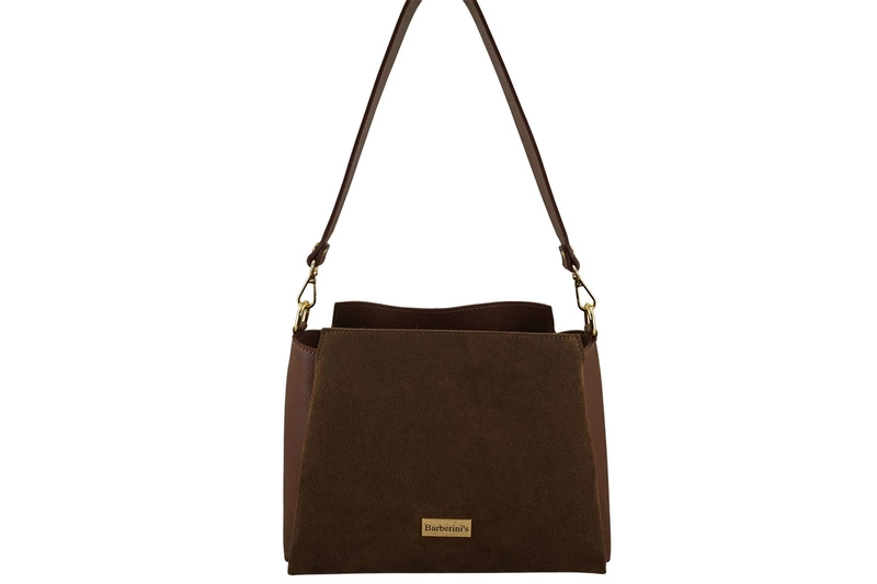 Torebka miejska z naturalnego zamszu i skóry - Brązowa