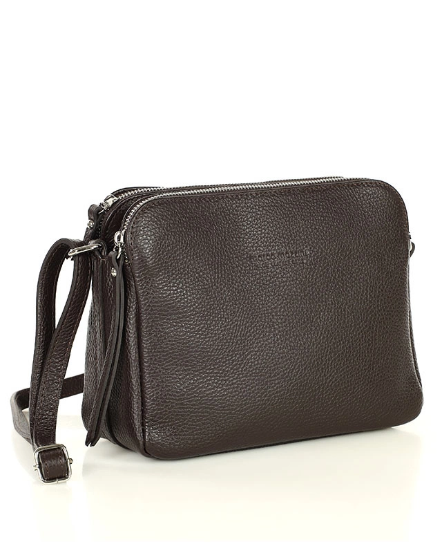Torebka skórzana crossbody listonoszka dwie komory - MARCO MAZZINI ciemny brąz