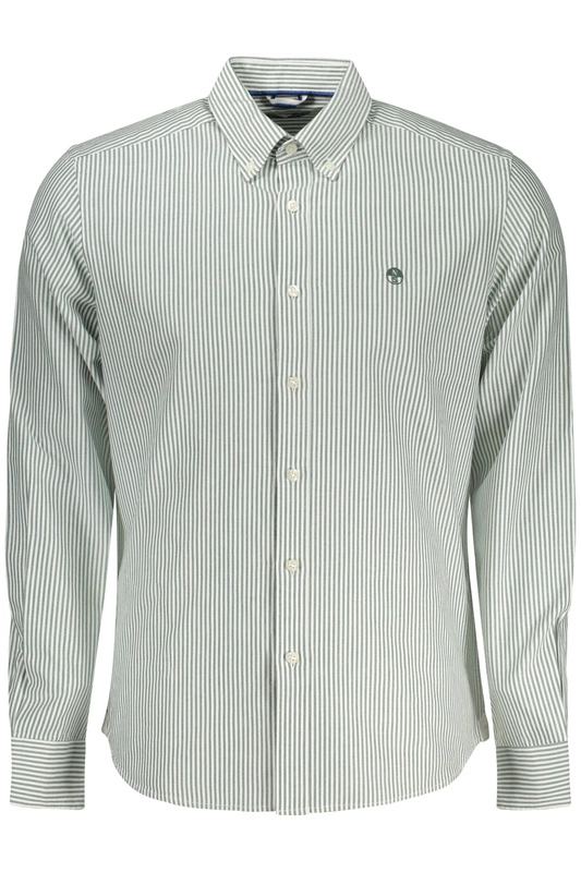 - ZIELONA KOSZULA W PASKI Z D�UGIM R�KAWEM, KO�NIERZYK ZAPI�TY NA GUZIKI, MANKIETY ZAPI�TE NA 1 GUZIK, GUZIKI, HAFT, LOGO, OCEAN POSITIVE