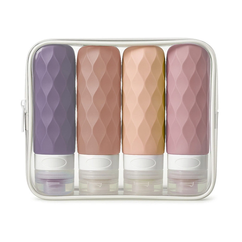• Wysokiej jakości silikon, eleganckie pastelowe kolory i 100% szczelności sprawią, że pakowanie stanie się szybkie, wygodne i bezproblemowe. W skład zestawu wchodzą 4 buteleczki 90 ml zapakowane w kosmetyczkę.