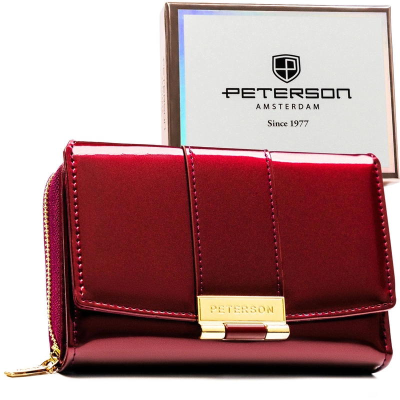 Portfel damski z lakierowanej skóry ekologicznej w śliwkowym kolorze, wyposażony w system RFID - Peterson