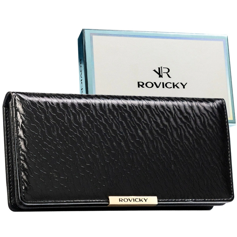 Portfel damski Rovicky to propozycja dla kobiet ceniących połączenie klasy, wygody i nowoczesnych rozwiązań. Jego dopracowany design oraz perfekcyjne wykończenie przyciągają uwagę, a ergonomiczny, poziomy układ sprawia, że każdy drobiazg znajduje swoje miejsce.