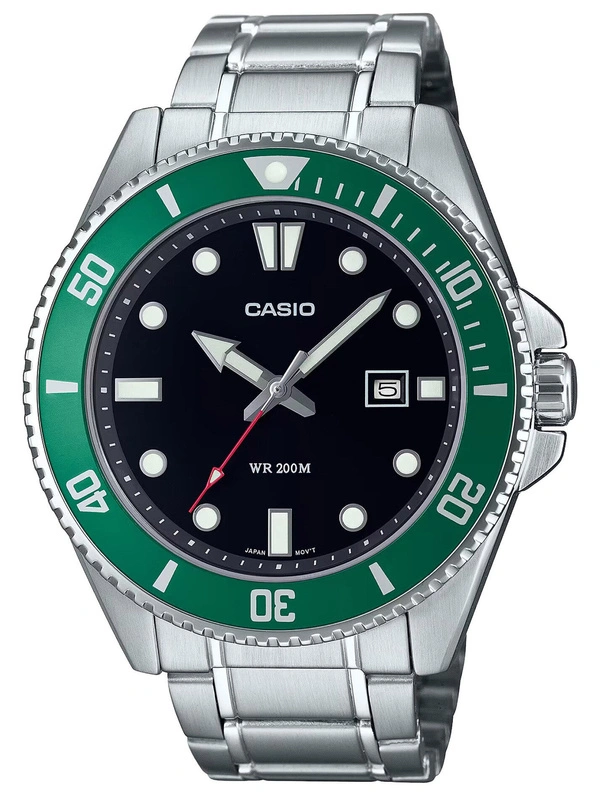 Zegarek Casio MDV-107D-3AVEF to idealna propozycja dla mężczyzn ceniących sportowy styl i niezawodność. Jego solidna srebrna koperta z stali nierdzewnej zapewnia trwałość, a zielona tarcza dodaje charakteru i oryginalności.