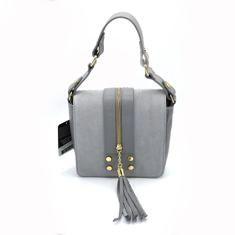 - Torebka z zamszu. Złote okucia nadają jej klasy i szyku. Przód listonoszki zdobi zamek, zakończony frędzlem. Wyposażona w krótki pasek, oraz dodatkowy, długi. Połączenie elegancji i oryginalności. Produkt dla najbardziej wymagających kobiet.
