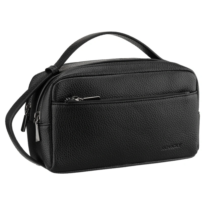 - Czarna, elegancka saszetka męska wykonana z wysokiej jakości skóry ekologicznej. Jednokomorowa z 3 praktycznymi kieszeniami. Wyposażona w 6 miejsc na karty i poręczny uchwyt. Zamykana suwakiem.