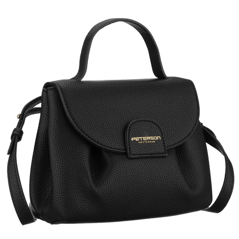 Listonoszka damska ze skóry ekologicznej w czarnym kolorze z kieszonką zewnętrzną - Peterson