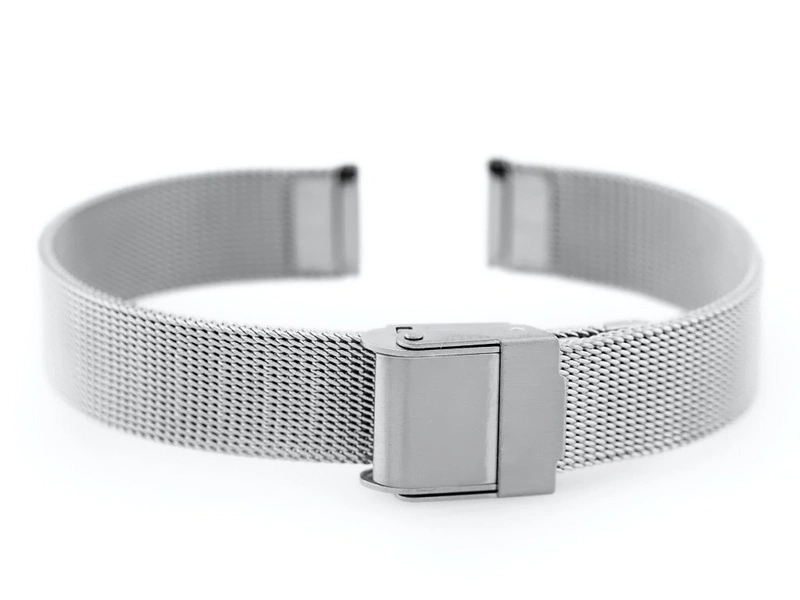 Stalowa bransoletka do zegarka typu 'siatka' wysokiej jakości w kolorze srebrnym