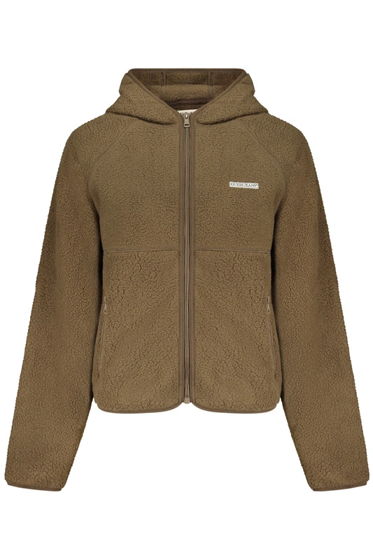 GUESS JEANS DAMSKA BR�ZOWA BLUZA Z ROZPINANYM NA ZAMEK