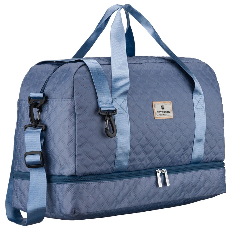 Treningowa torba wykonana z poliestru w niebieskim kolorze, dwukomorowa i zamykana suwakiem - Peterson