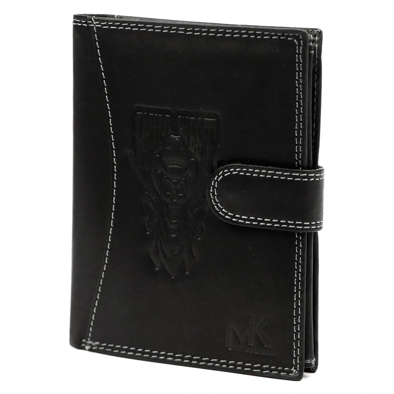 Ten rozbudowany portfel marki Money Kepper to propozycja dla mężczyzn, którzy cenią wyrazisty styl i oryginalne detale. Charakterystyczny wzór z motywem czaszki i rewolweru, nawiązujący do estetyki Dzikiego Zachodu, nadaje całości niepowtarzalnego charakteru i wyróżnia portfel na tle klasycznych modeli.