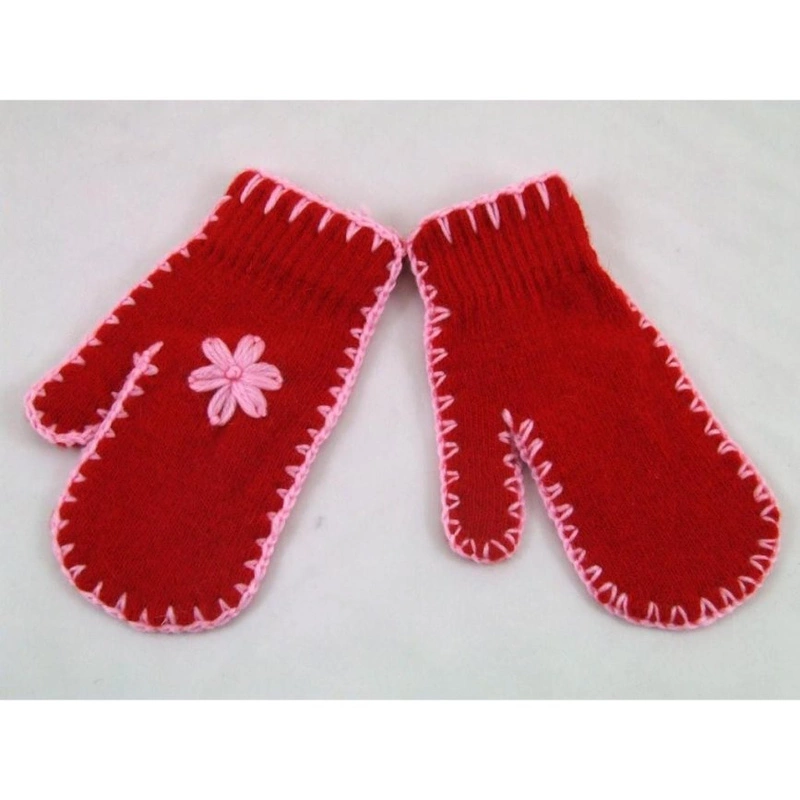 Urocze jednopalczaste rękawiczki ozdobione kwiatem.