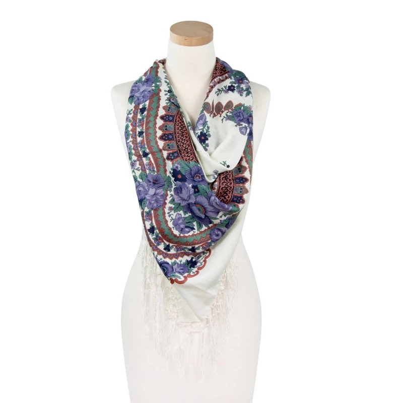 Frędzle są długie i delikatne oraz lekko połyskliwe, co dodaje chuście lekkości.
