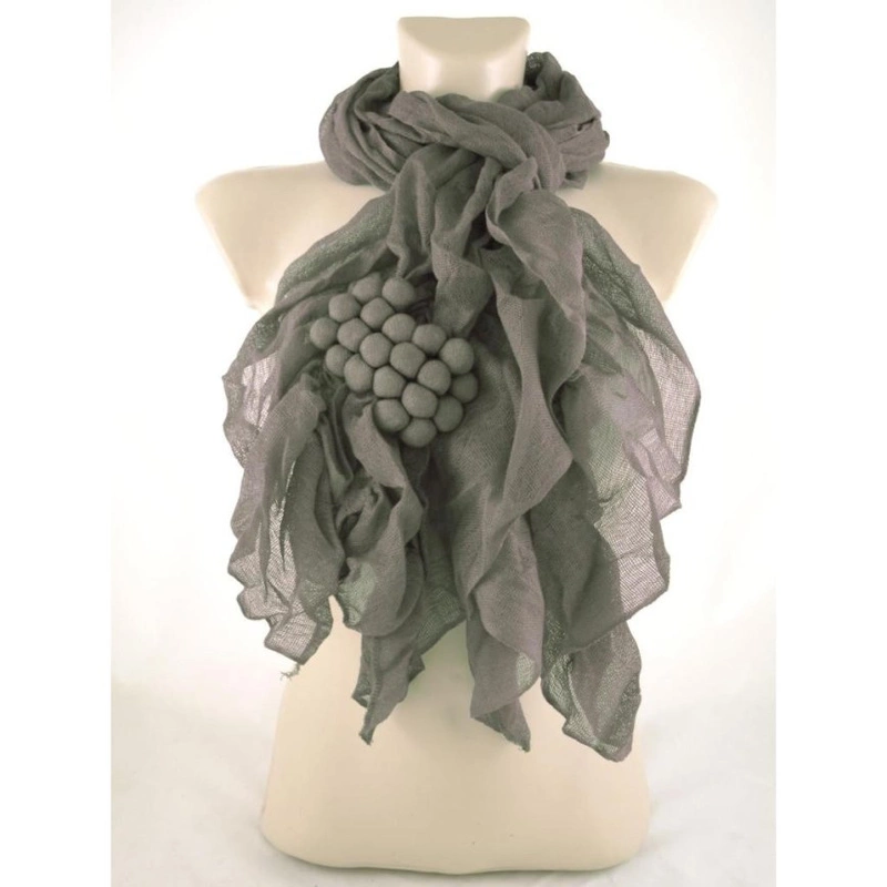 Ciekawy szal ozdobiony kuleczkami układającymi się w kiści winogron.