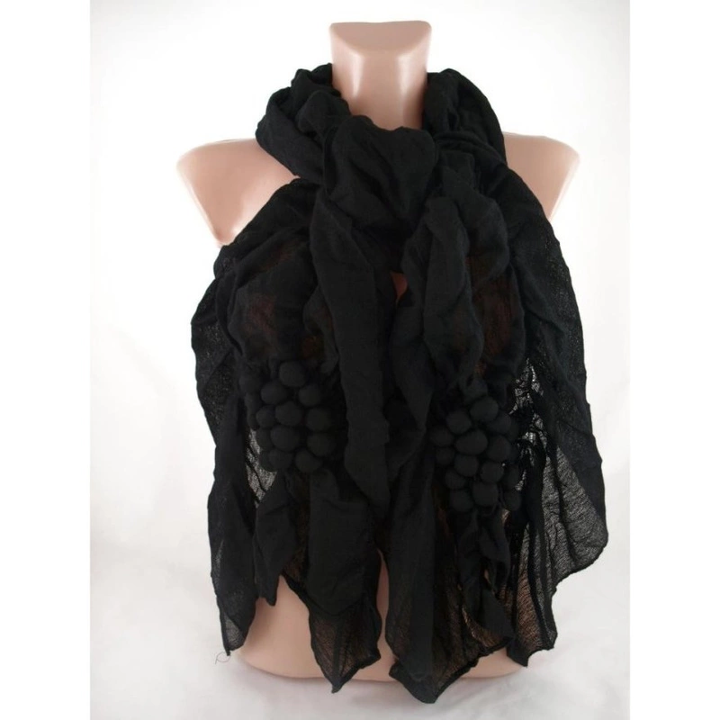Ciekawy szal ozdobiony kuleczkami układającymi się w kiści winogron.