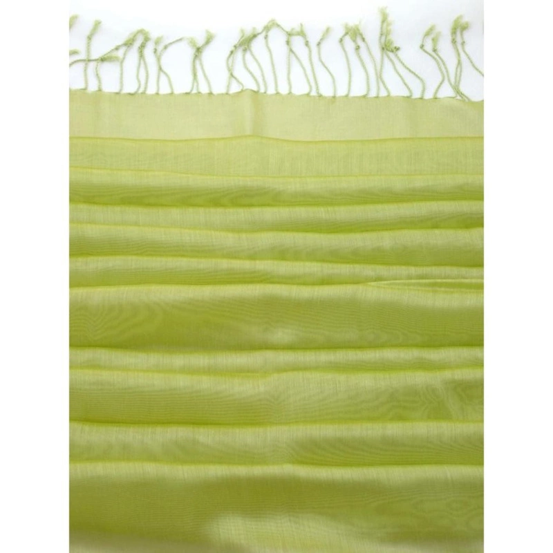 Lekko połyskujący, zwiewny szal wykończony frędzlami.