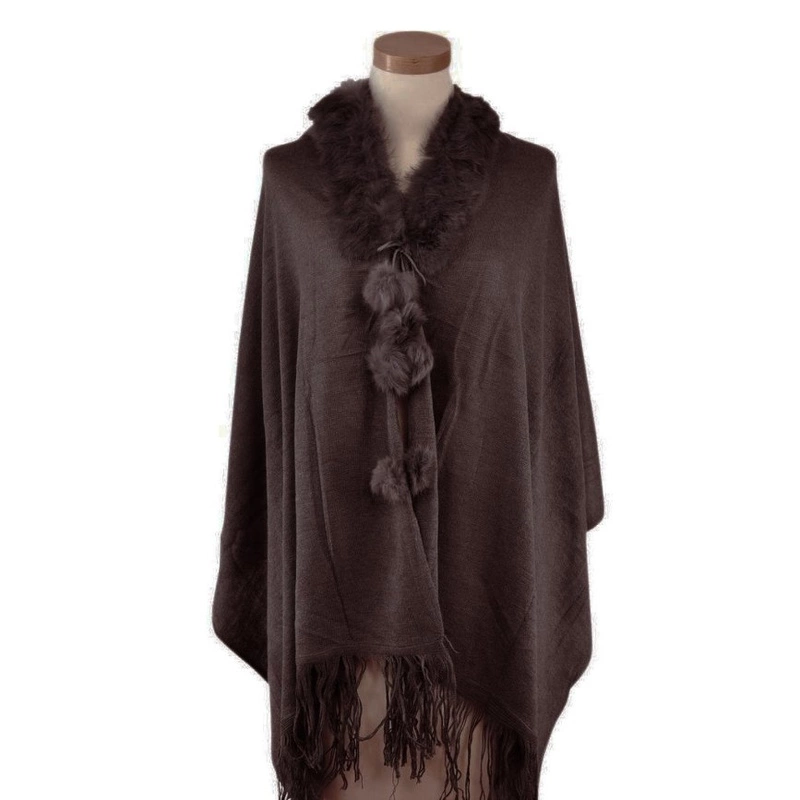 Piękny, ciepły szal obszyty naturalnym, króliczym futerkiem.