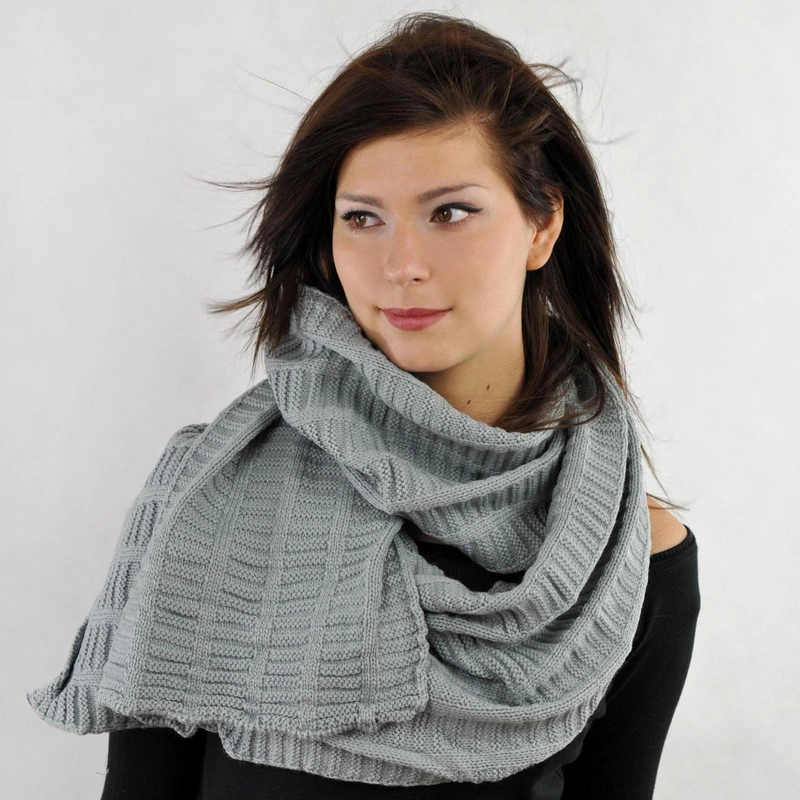 Klasyczny zimowy szal o interesującej fakturze. Fason uniseks.