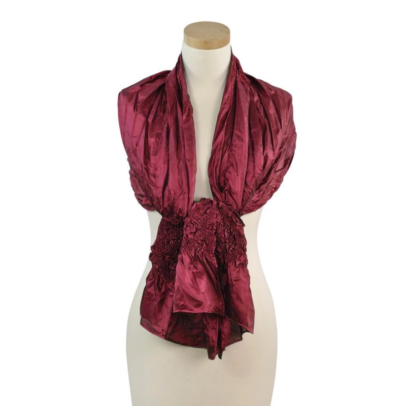Elegancki satynowy szal damski z falbanką.