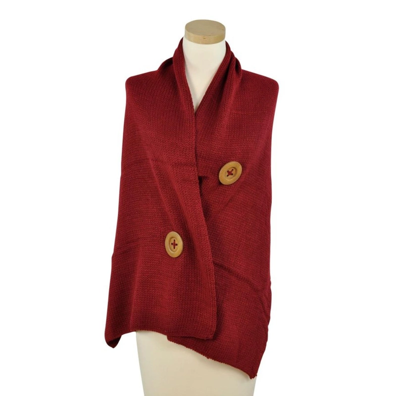 Ciepły zimowy szal z dużymi drewnianymi guzikami.
