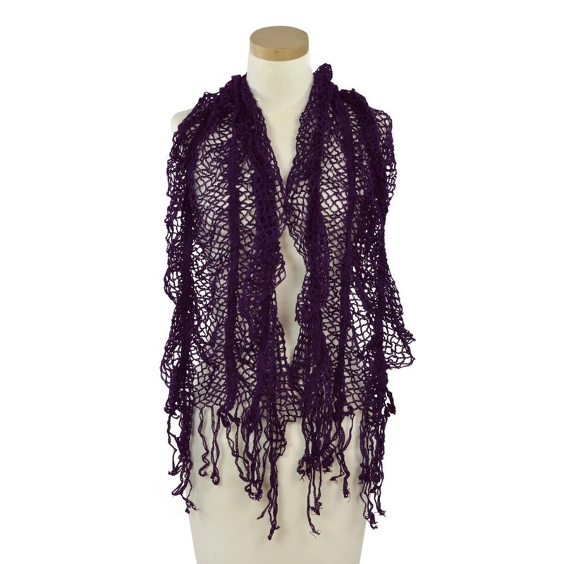 Ażurowy szal zimowy damski, o asymetrycznym kształcie.