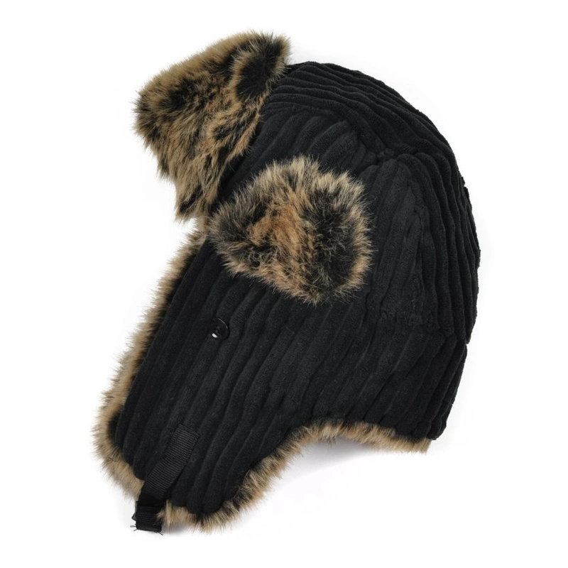 Sztruksowa uszatka ze sztucznym futerkiem. Model uniseks.