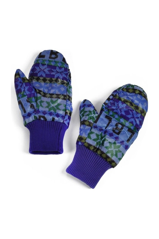 Jednopalczaste puchowe rękawiczki w gwiazdki i literki.