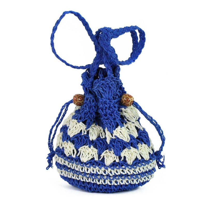 Mała letnia torebka w formie sakiewki. Zamykana ściągaczem.