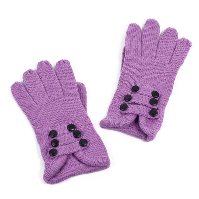 Stylowe rękawiczki zdobione trzema paskami i guziczkami.