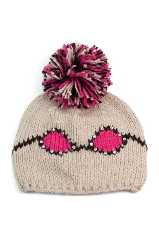 Zimowa damska czapka w pomponem kolorowym.