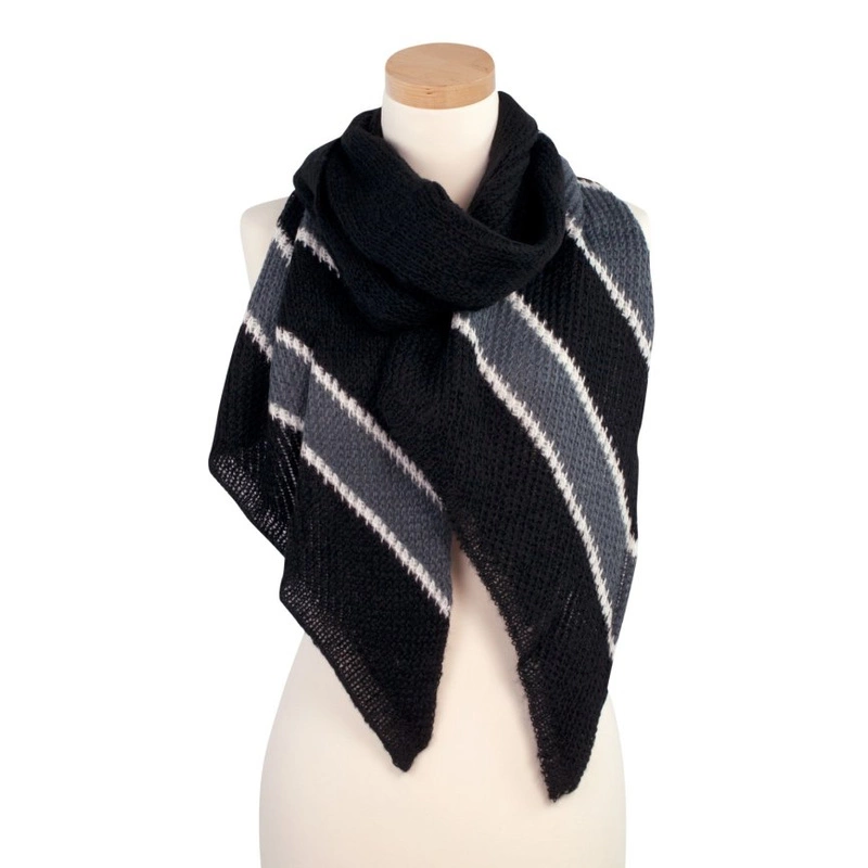 Jesienno-zimowy szal z dzianiny, ozdobiony motywem pasów.