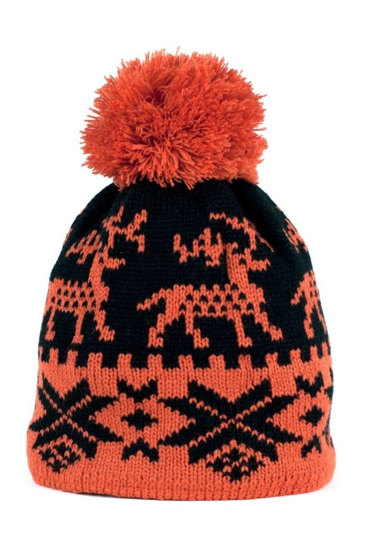 Ciepła czapka z motywem renifera i gwiazdki.