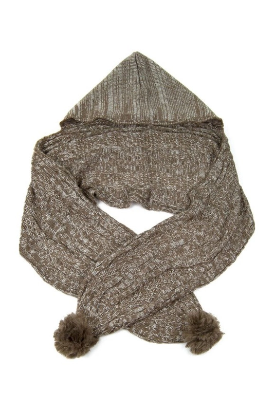 Kapturo-szal w melanżach. Zakończony pomponami.
