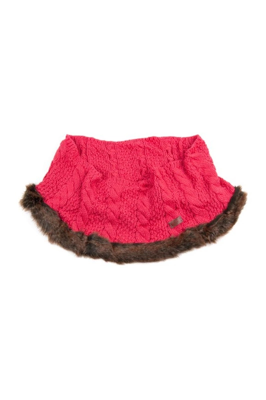 Zimowy komin wykończony sztucznym futerkiem.