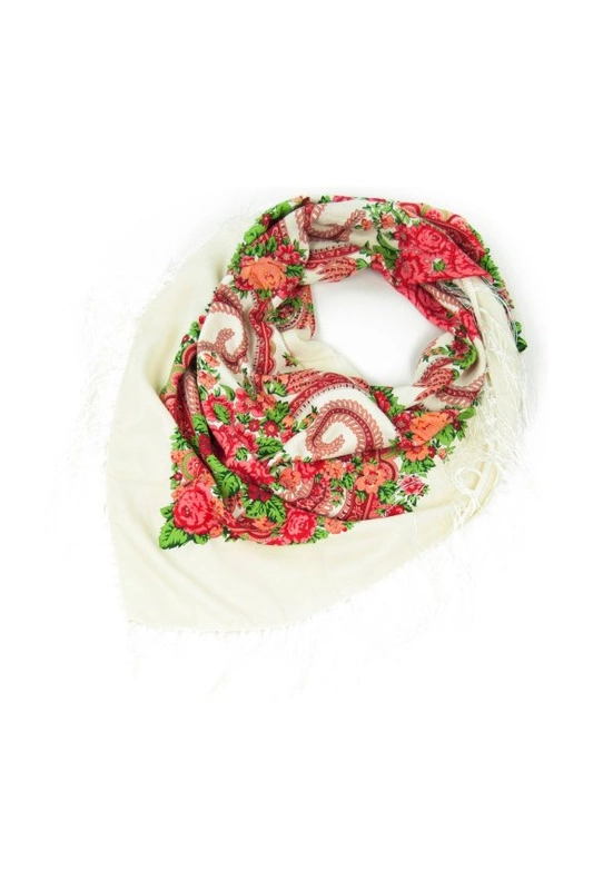 Duża damska chusta ludowa z frędzlami.
