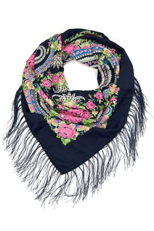 Duża damska chusta ludowa z frędzlami.