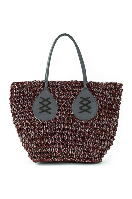 Letnia damska pleciona torebka koszyk, wykonana z trawy morskiej.