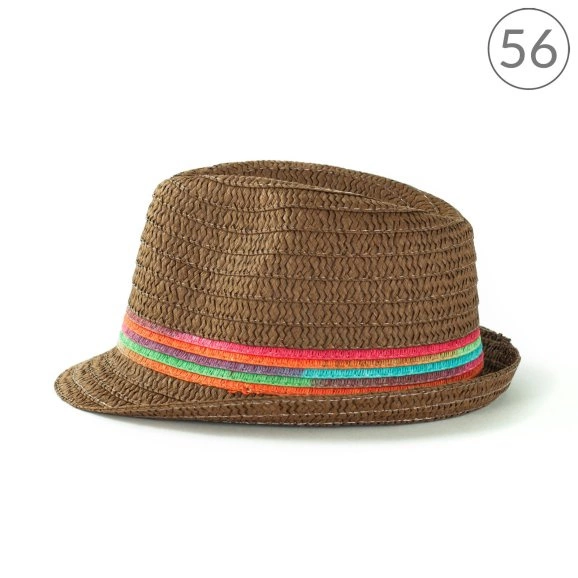 Kapelusz ozdobiony jest tęczową trwałą wstążką.