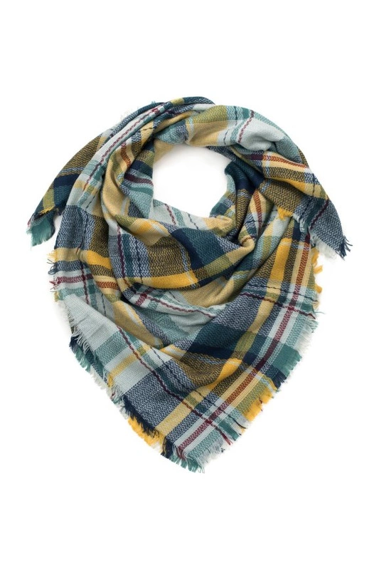 Ogromna, kocykowa chusta w modną kratkę. Wykończona postrzępionymi bokami.