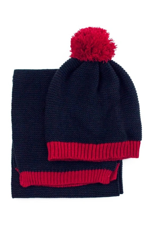 Minimalistyczny zimowy komplet składający się z czapki i szala. Model uniseks.