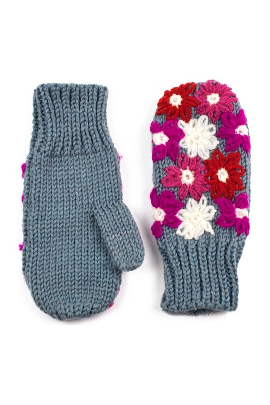 Jednopalczaste ciepłe rękawiczki zdobione haftowanymi kwiatami.