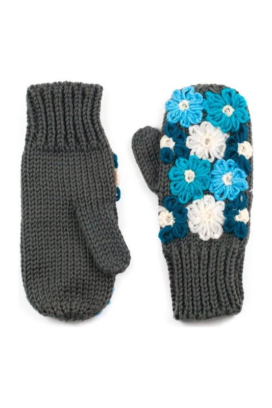 Jednopalczaste ciepłe rękawiczki zdobione haftowanymi kwiatami.