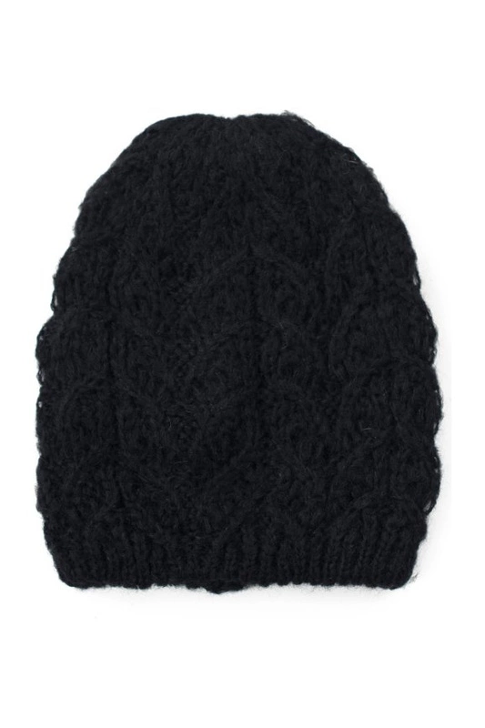 Piękny ozdobny splot oraz ciekawy fason sprawiają, że czapka jest bardzo twarzowa.
