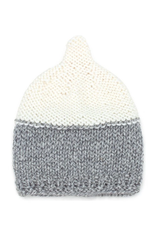 Dwukolorowa dziecięca czapka w kształcie dzwoneczka, ręcznie wykonana w Polsce.