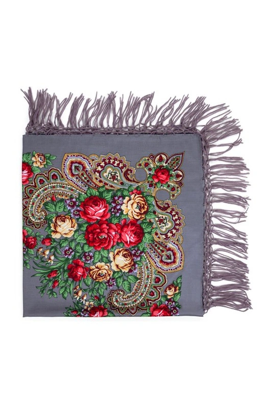 Piękna ludowa chusta ozdobiona kwiatowym wzorem.