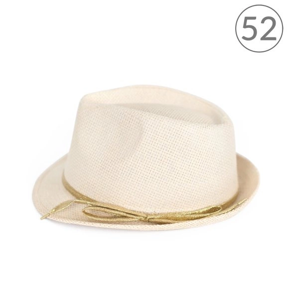 Kapelusz trilby ozdobiony złotą sznurówką. Wykonany z włókna celulozowego, podszyty podszewką.