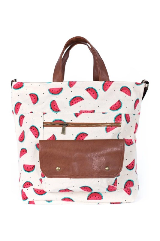 Ma regulowany pasek na ramię, dwie zewnętrzne kieszenie oraz zapięcie na zamek.