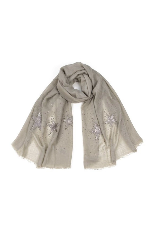 Ozdobiony błyszczącymi kamieniami i naszywkami z cekinowymi gwiazdami.