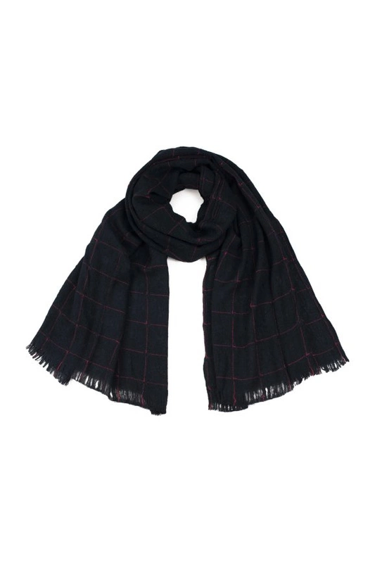 Długi szal w kratę, oryginalny splot. Model uniseks.