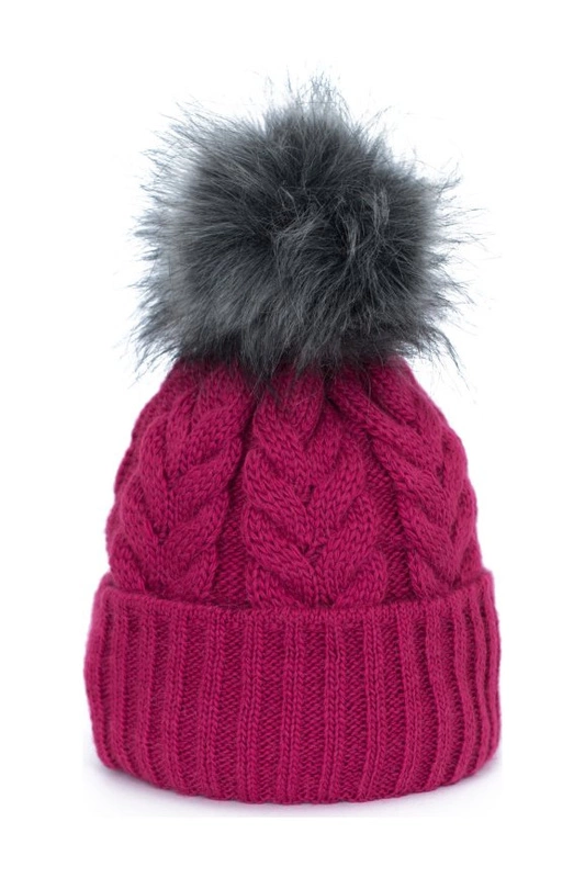Futrzany pompon jest wykonany ze sztucznego futerka.